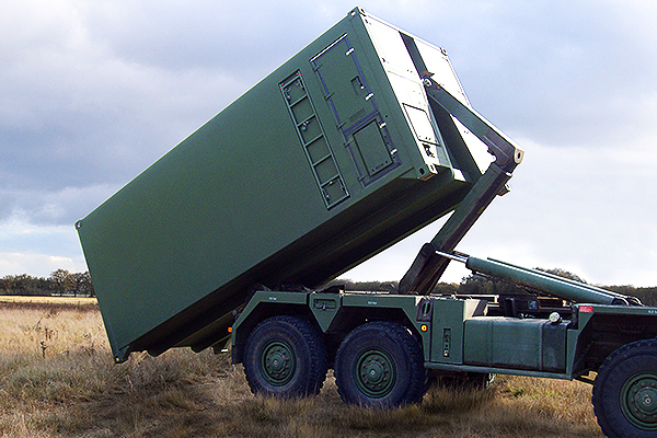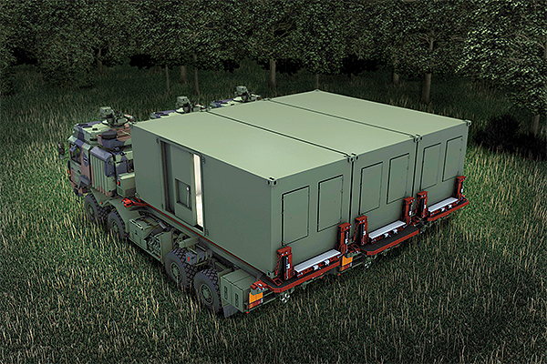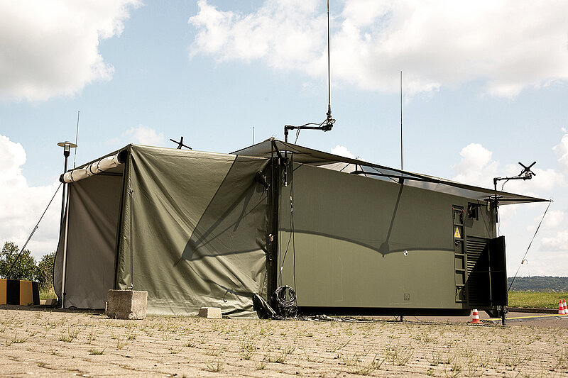 Das hochmobile Einsatzszenario fordert dagegen den Container der aufgesetzt betrieben werden kann. Schnelle Verlegefähigkeit, Schutz und Signaturreduzierung sind von entscheidender Bedeutung.